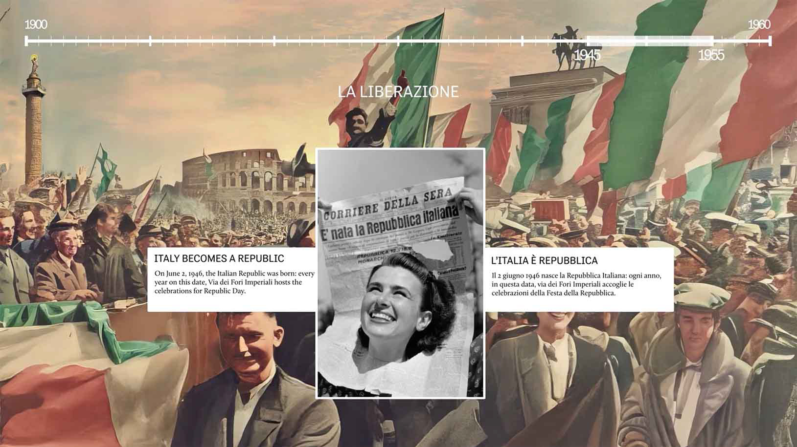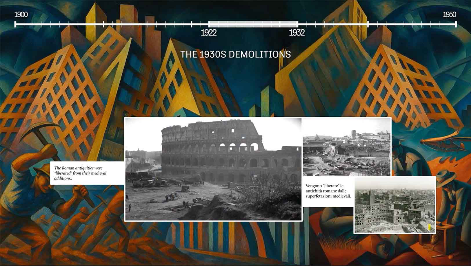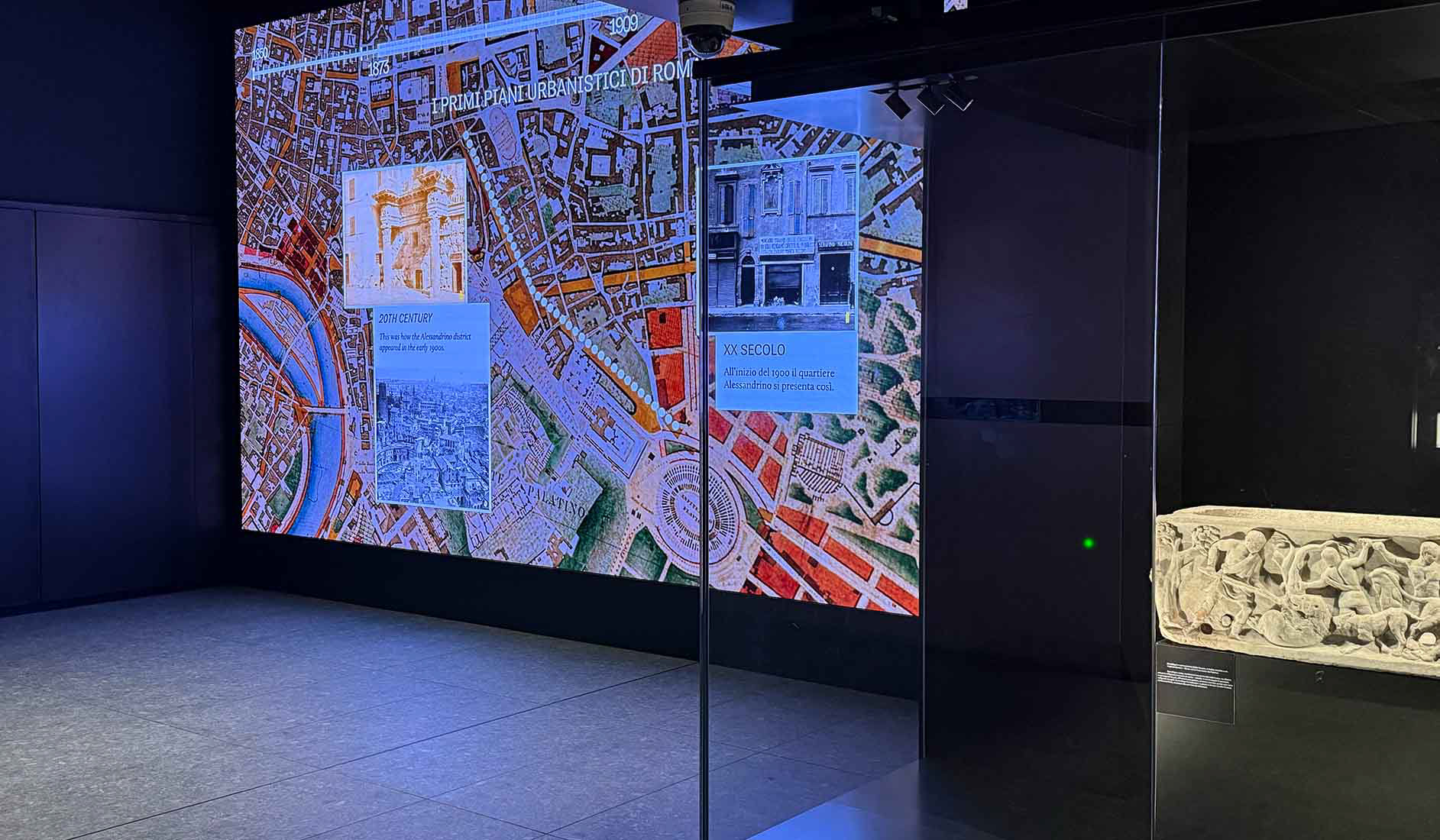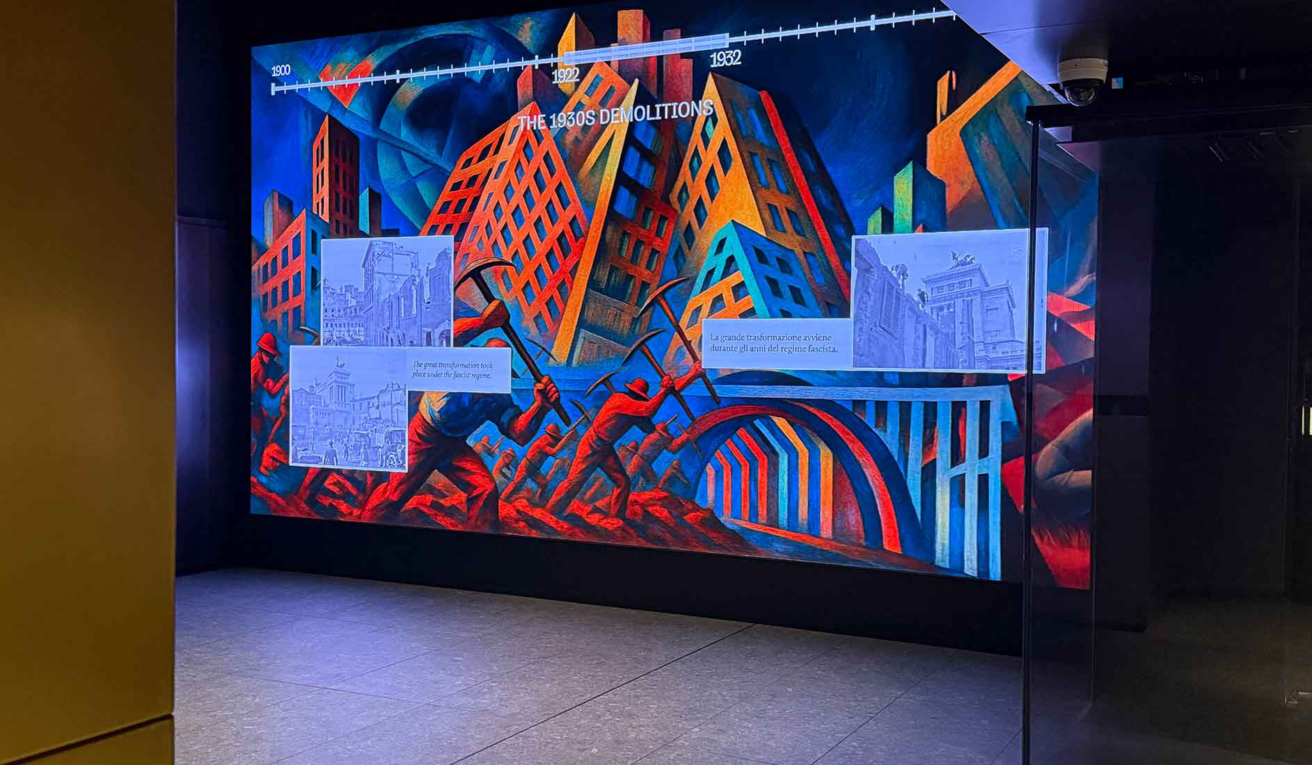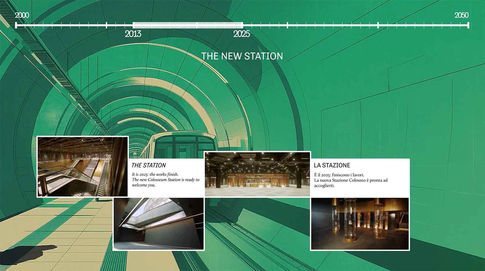 "La nascita di via dei fori imperiali" is an immersive video project presented at the free Archaeostation Museum, located at the Colosseo/Fori Imperiali metro station in Rome. Displayed on a large 6 × 4 metre screen, the video guides visitors through the key moments in the transformation of this historic urban area, retracing the history of Via Alessandrina and its evolution into today’s Via dei Fori Imperiali. Through a combination of visual storytelling and historical narrative, the project offers an engaging overview of the archaeological and urban development of one of the city’s most iconic landscapes, making its layered history accessible to a wide audience.